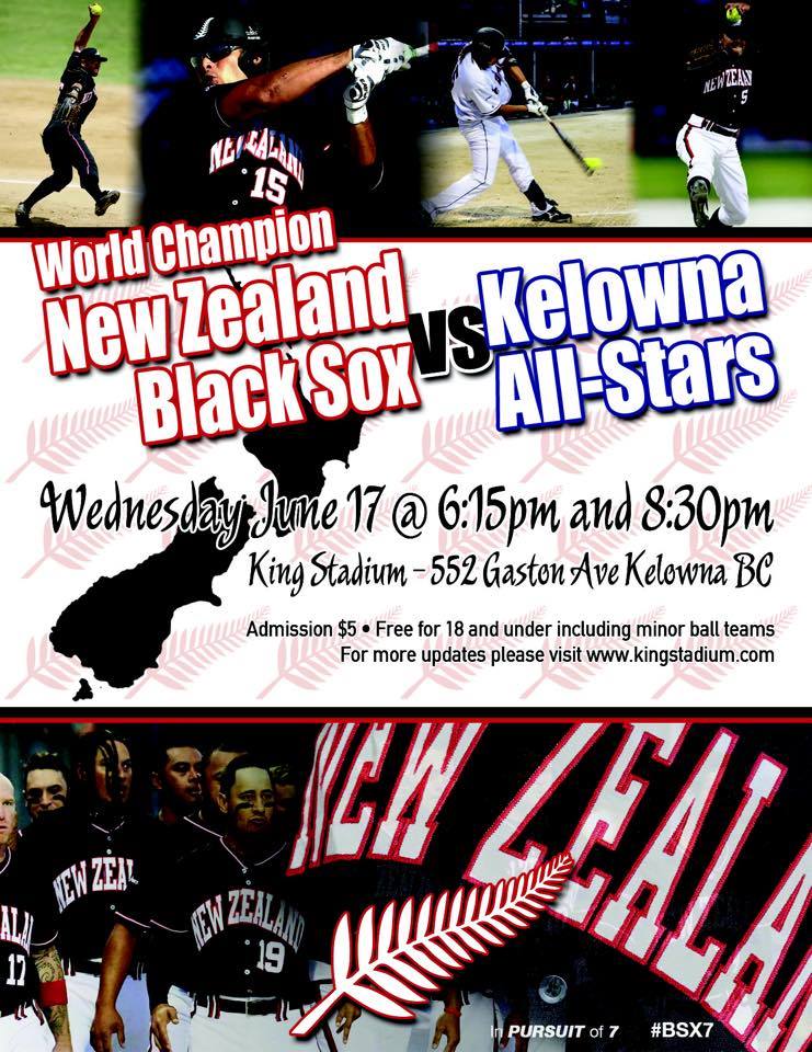 New Zealand Black Sox at Kelowna B.C. All Stars – June 17, 2015 June 12, 2015 by fpw From Softball New Zealand: Click to enlarge