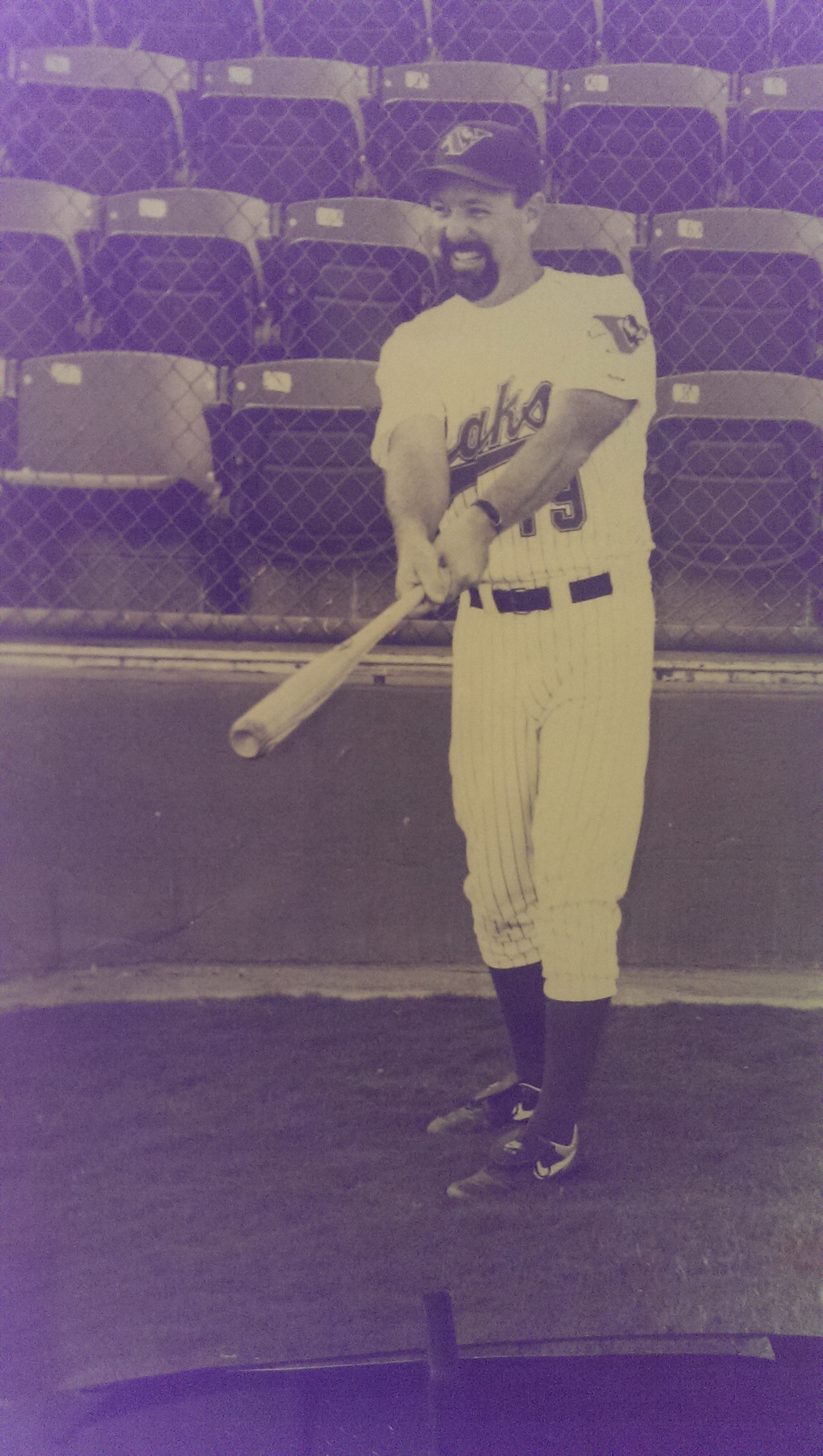 I was reflecting today on the third anniversary of my brother Bobby’s passing, and ran across this old photo of him taking batting practice with the Visalia Oaks, in 1994. It was his first job in baseball. He worked in the front office and was not on the roster, but the players invited him to suit up and take some swings with them. The look on his face says it all – he was thoroughly enjoying himself, and why wouldn’t he be? He was just settling in at a job in baseball, something he had dreamed of, and made happen. It is a look I see often on fastball fields wherever I go.