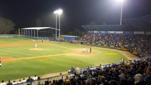Visiting Blair Field in Long Beach last night for the game between the host Long Beach Dirtbags and the University of Texas was a bit of a homecoming for me. I hadn’t been to Blair Field in some time, but the old-time feel of the place provided a familiar welcome. The NCAA Regional for college baseball was too much to resist.