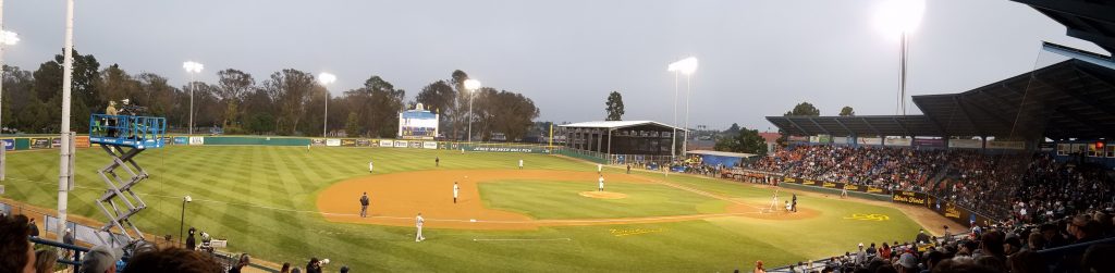 Dodger Stadium opened in 1962 and is now the third oldest ballpark in use in Major League Baseball. Blair Field’s history stretches even further back, and provides hallowed ground for the baseball players and fans alike. Blair is much improved these days, with renovations funded by former players Jered Weaver (bullpen) and Troy Tulowitski, who put up $1 Million for improvements to park. The TV trailer and satelite dish of ESPN last night told fans that their team had arrived, and worthy of the national spotlight.
