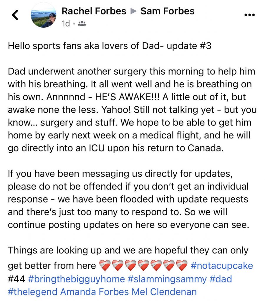 Update on Sammy, posted 1/3/2022 Rachel and Amanda Forbes: