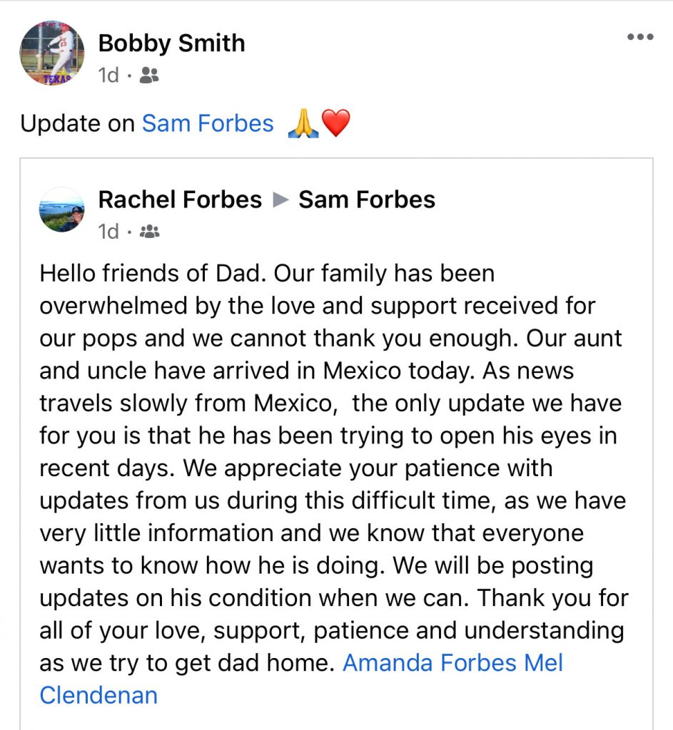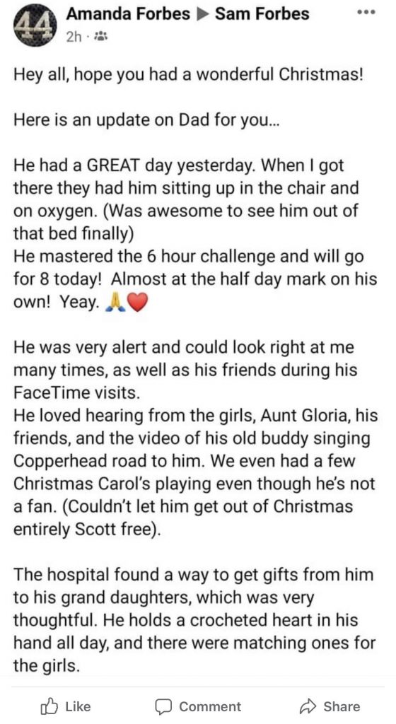 Update on Sammy, posted 12/15/2021, courtesy Bobby Smith, reposting note from Rachel Forbes: