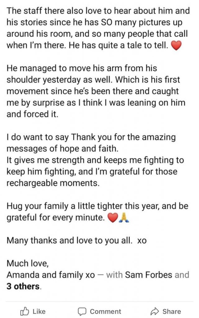 Thanks for sharing. The support for Sam and to help him through this struggle is heartwarming to see.