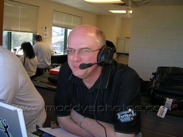 You’ll also find pics of ISC II broadcaster Joe Todd, who went down from Ontario, Canada to watch the tournament and wound up helping with the broadcasts, as well as yours truly and Kyle Smith. Kyle is the newest member of the Ballparkradio crew, having been signed as a “free agent” by ISC II Commish Blair Setford, to help with the ISC II Tournament of Champions broadcast program last summer. Kyl, a graduate of the broadcasting school at Mohawk College in Ontario, Canada, made his first visit to the AAU tournament, providing plenty of levity on and off-the-air. We’re working on arrangements to have Kyle on hand to broadcast at the Red Rock Tournament in May. He is a natural behind the mike, and judging from the bag of email received, a favorite with the listeners. Not shown in the photos, is Bill Hillhouse who did a outstanding job as color man on the semi-final game on Sunday. Bill brings a wealth of knowledge of the game and the players (plus some juicy rumors) to the broadcasts and we hope to have him with the crew again before the season is over. The addition of Joe, Kyle and Bill to Ballparkradio’s AAU broadcast team enabled us to broadcast twice as many games as in prior years (a total of 8 games this year). We greatly appreciate their work.