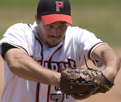 Sebastian Gervasutti is but 24 years old, but already owns an ISC World Championship ring which he won as a member of The Farm Tavern team last year, and has several World Tournament under his belt, including one in 2006 with his current team, Team Rainey, in which he beat higher ranked opponents. Sebastian is a different type of pitcher than Mata, but can be equally effective, known for the tight rotation and movement of his pitches, and also for his quick smile and amiable nature. At Santa Barbara this past weekend, Mata and Gervasutti traded 2-1 wins, with Sebastian’s coming on Sunday to eliminate Mata’s Bombers. Earlier this year, Sebastian was one named Co-MVPitcher at the AAU International Tournament
