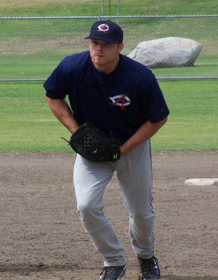 Game 1 Italian Athletic Club's Tyson Barkman struck out 14 Saturday morning at Bakersfield, but suffered the loss to Cal State Builder's Kevin Kammueller, 2-0, Saturday morning at Bakersfield, California. (photo by Fred Hanker)