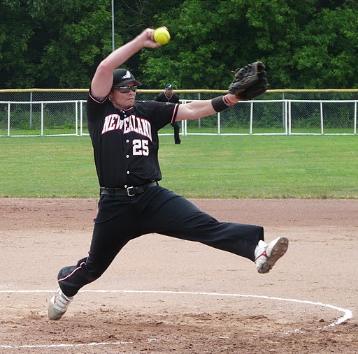 New Zealand Black Sox pitcher # 25 Nathan Taikato at the Legends in Kitchener, June 2011 (photo by Gord Dearborn)