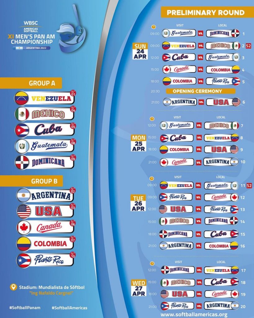 Updated schedule for the WBSC Americas Pan Am Qualifier in Parana April 24-30. @SoftballCanada schedule: